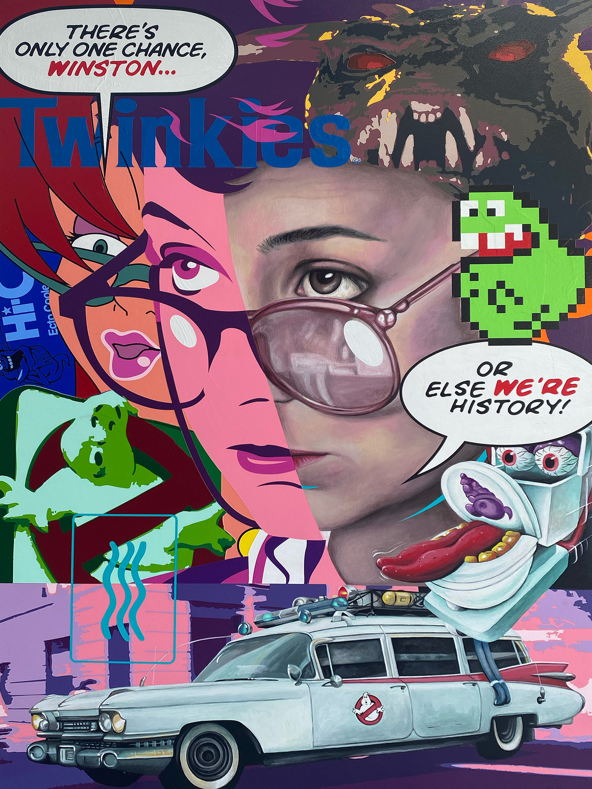 2025 Acrylic and Aerosol on Aluminum 24” x 36” Collab piece with the amazing Harmony Diemling